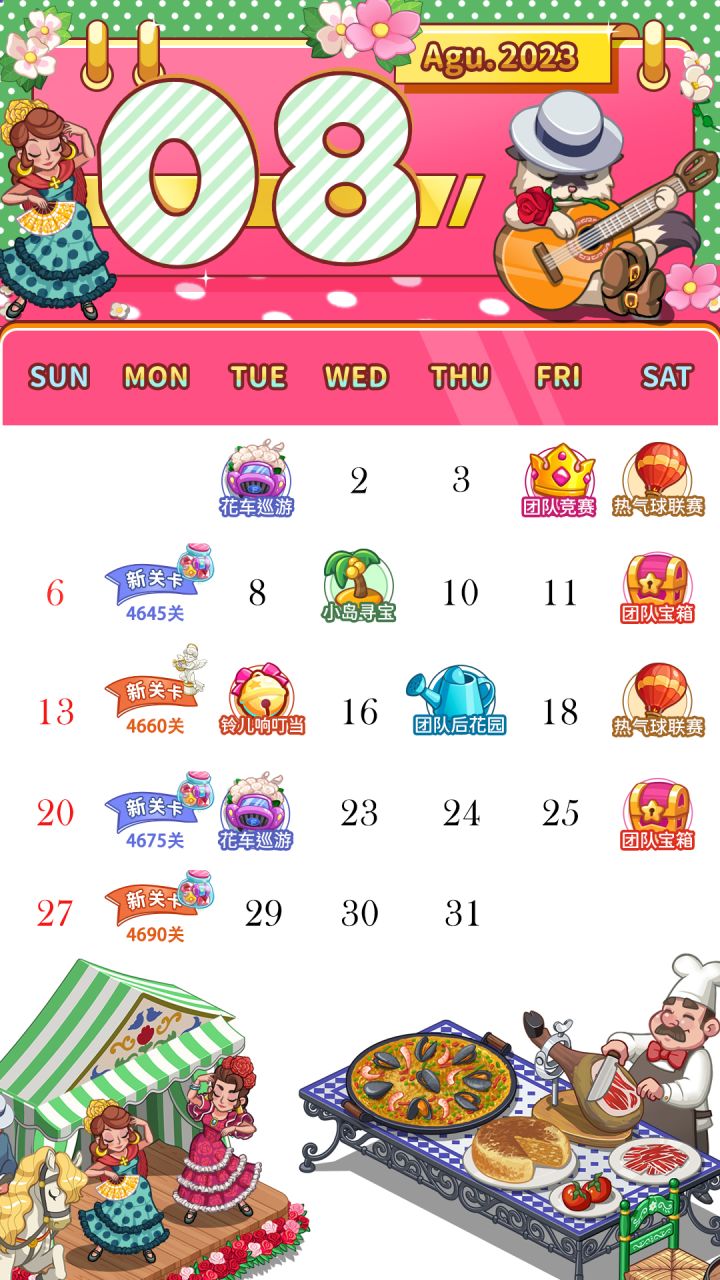 8月的活动日历来啦~快来看看本月都有哪些活动吧~(可能会有部分改动,具体以游戏内为准)