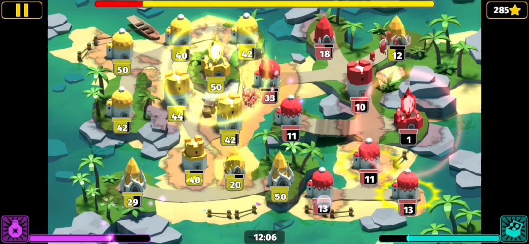 我军是东部红区,攻下西南主要阵地后集中全部东部火力向西北区防御塔进攻,防止敌人反扑,在西南用内部兵力合力逐个击破,我军攻破西北防御塔后,大橘已定!我军杀敌九千五百余人,占领建筑104次,黄军伤敌万两千余人,以惨重的代价,大获全胜!