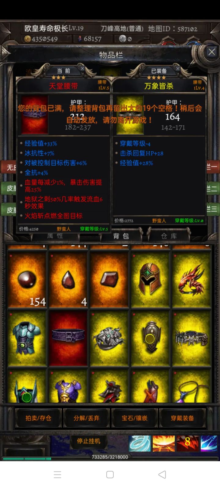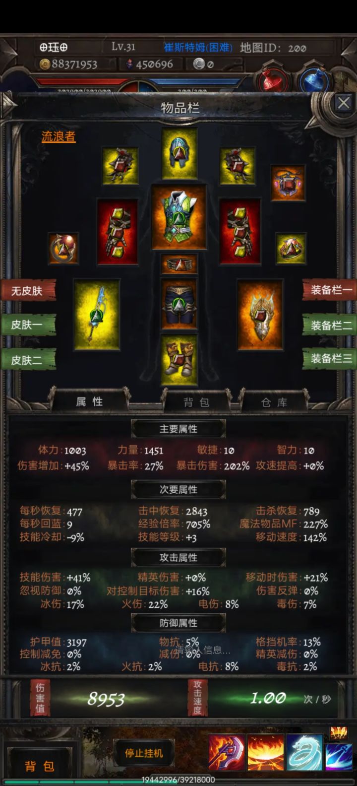 开局发育:猎魔人开局首先去学习技能佩戴好技能在出门打怪,效率会好很多。学完技能不需要出门去打怪,人太多抢不到多少怪,我们直接去副本普通1,虽然怪很厉害但是我们可以死了复活(前期死亡扣除少量金币和经验)这样我们可以和怪耗了,死了在复活,反复这样效率比在外面快一些(懒人操作:第一次复活把自动复活打✔,然后点挂机,期间我们可以去看看电视,干干别的事)挂机一会就5级了,把怪零零散散爆的装备能带的带上,回