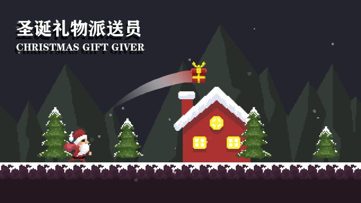 圣诞节,圣诞老人来派送小朋友礼物了。 简单的跳跃和投放圣诞礼物,在房子上的时候,就能获得分数!!!