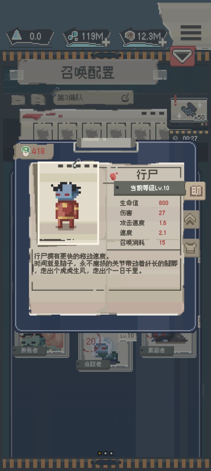 一定要大数量的丧尸!!迅速顶上去扛伤!!人类真的太脆了 建议,还魂尸,行尸,战力2w及以上应该都能打,只是打得慢点