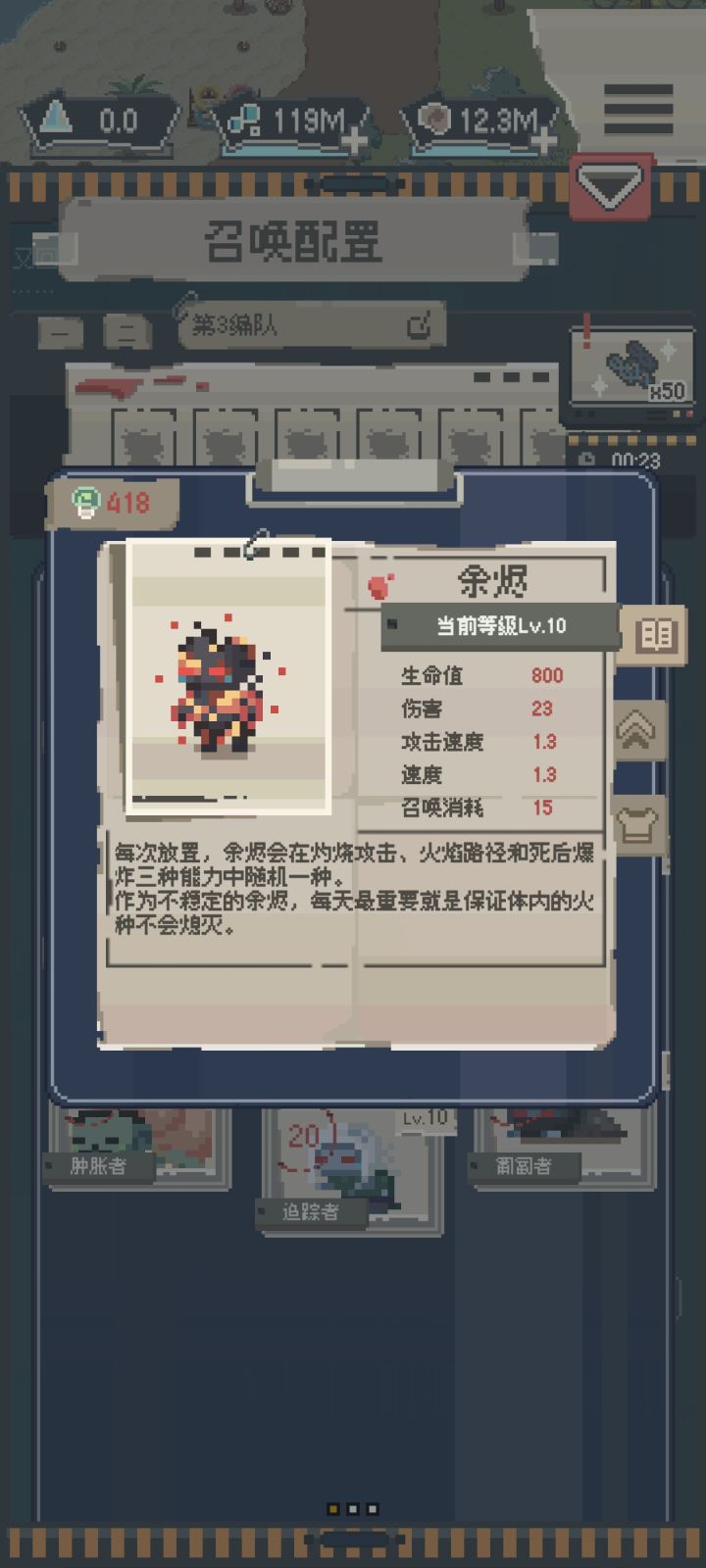 本人肝帝一位,肝完11小时后,感觉人还可以,就像原神刷11小时,人都要虚脱了————————分割线扯入正题关于这11个小时,我收获了什么?应该收获了一条46800战的号现在来说一下我的思路,首先丧尸的选择前期个人主推余烬个人评测:伤害高,移速适中,但血量比较拉跨,能量需要15点,对于前期的能量总量和能量回复速度来说是比较耗能比较多的,但是可以用尝试用来打突袭,但注意放入的位置肿胀者