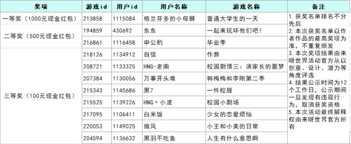 各位小伙伴们,剧场活动“来呀奥斯卡”第一期圆满结束啦,非常感谢大家的支持和踊跃投稿!经过官方工作人员的评定,我们的获奖名单公布如下:请获奖的小伙伴在5月12日之前,联系我们的官方工作人员(Mimi:253073747)提交以下认证资料:1.来呀世界个人资料界面截图(需包含用户ID)2.个人作品界面截图(需包含作品ID)3.个人QQ号(可以接收红包)4.真实姓名,手机号,身份证号核实无误