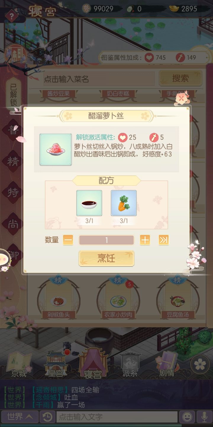 停更!因为看到论坛有人发了完整菜谱我就不再更新了。外加这游戏卡我主线——连7天的新手活动都完不成——于是我决定弃游了。评论区是精品菜,以此类推。普通菜(完)