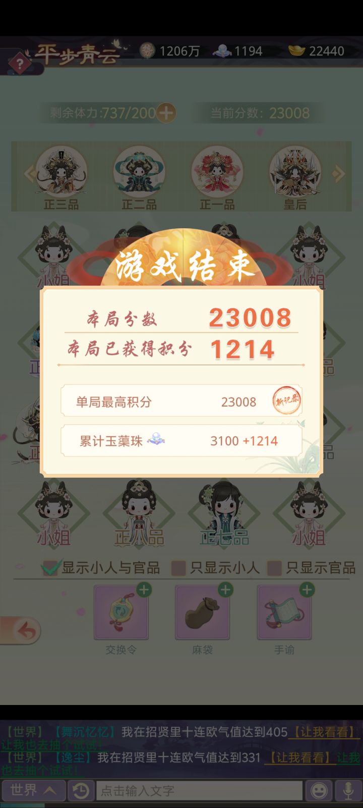 记录一次小游戏“平步青云”的成果,第一次合成皇后可太不容易了。