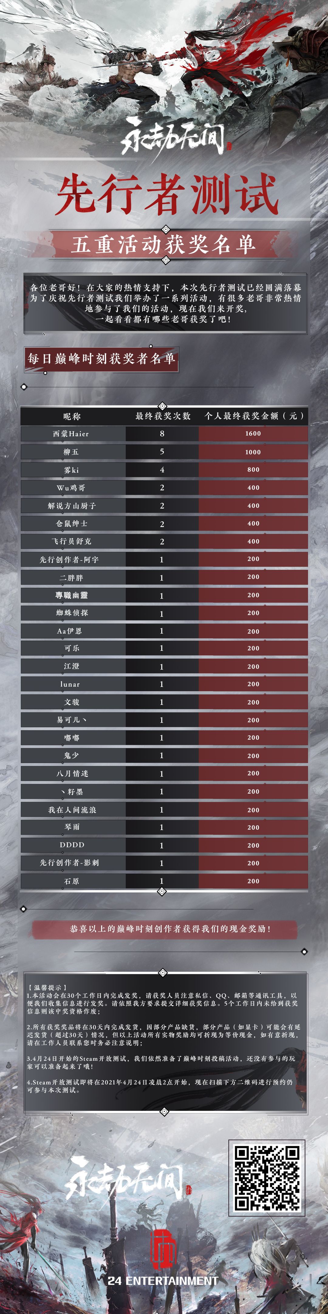 《永劫无间》先行者国服测试五重活动获奖名单公布!
