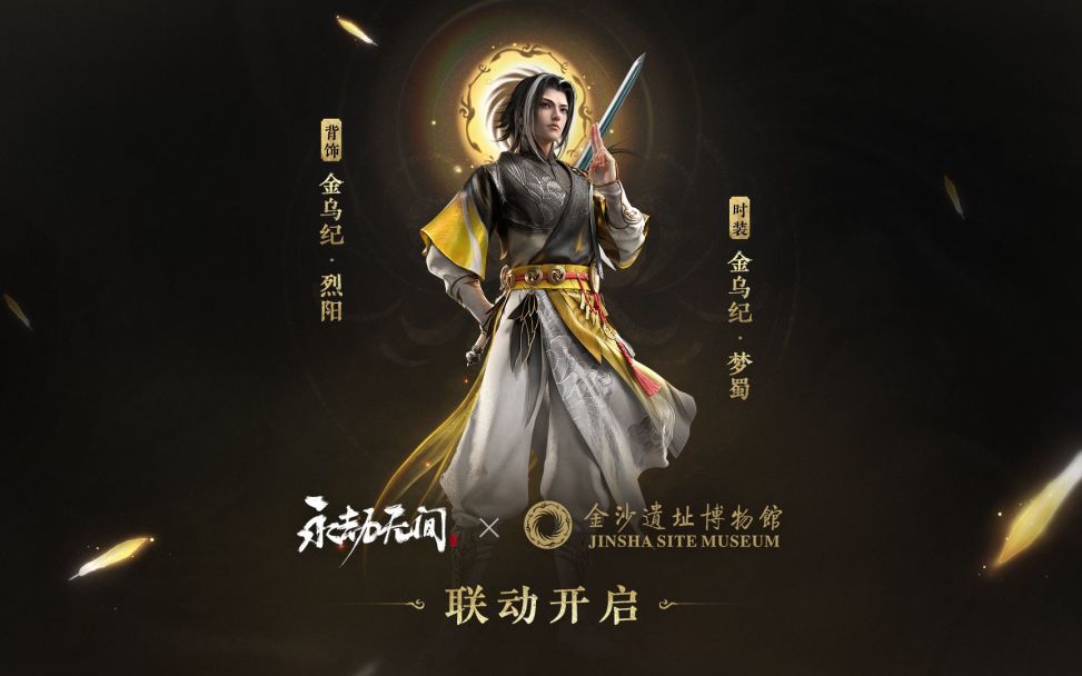 心驰神乌,梦回古蜀;蜀锦灵巧,华采奕奕; 金羽流光,神乌来仪! 永劫无间×金沙遗址博物馆 联动皮肤【金乌纪·梦蜀】,现已上线!