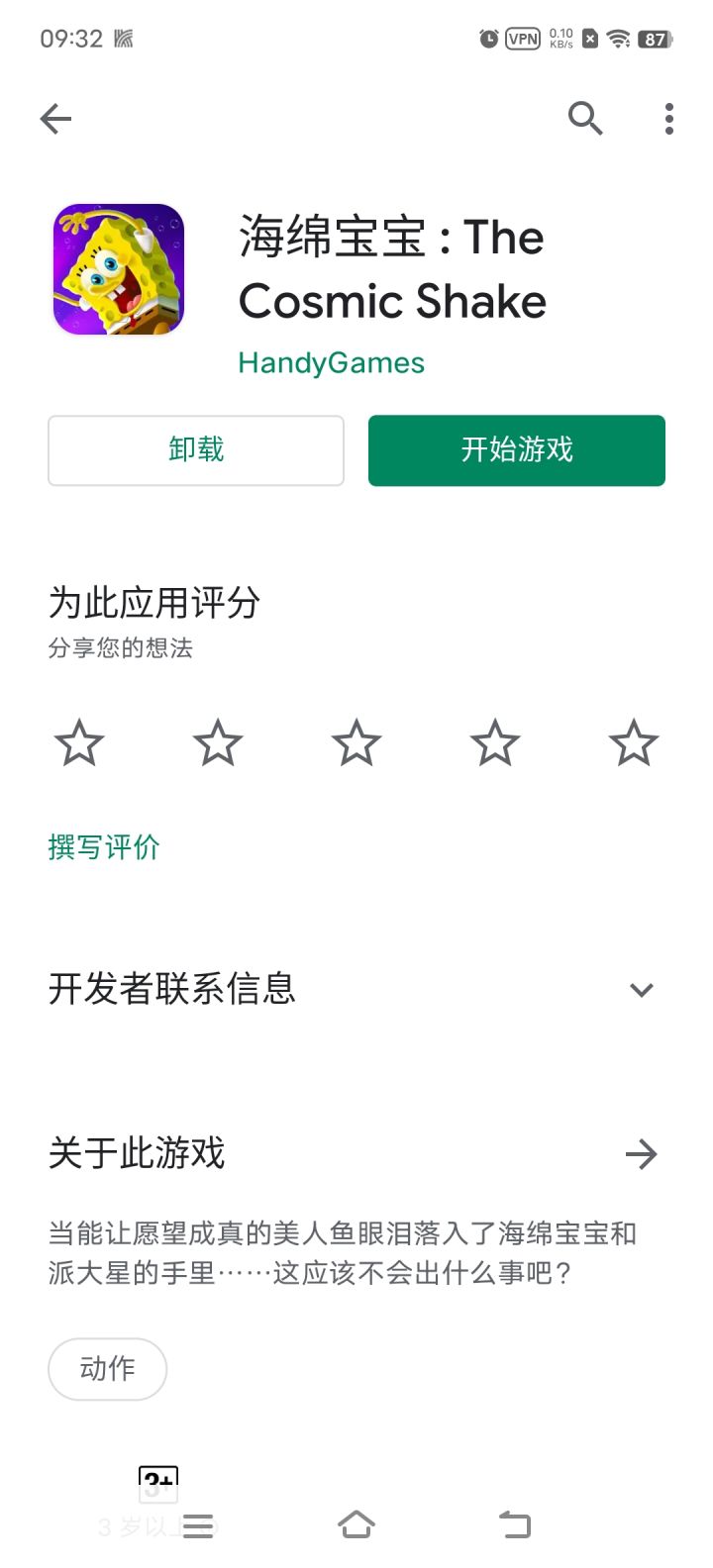 海绵宝宝宇宙摇摆上线 游戏支持120帧 史诗级画质 支持10种语音包 唯独没有中文语音 游戏的中文翻译有bug 有几句是没翻译 游戏大小5.12GB(不包括语音包) 语音包总大小为2.3GB 都下载内存可以到达8GB 安卓港区62人民币 其他地区未知