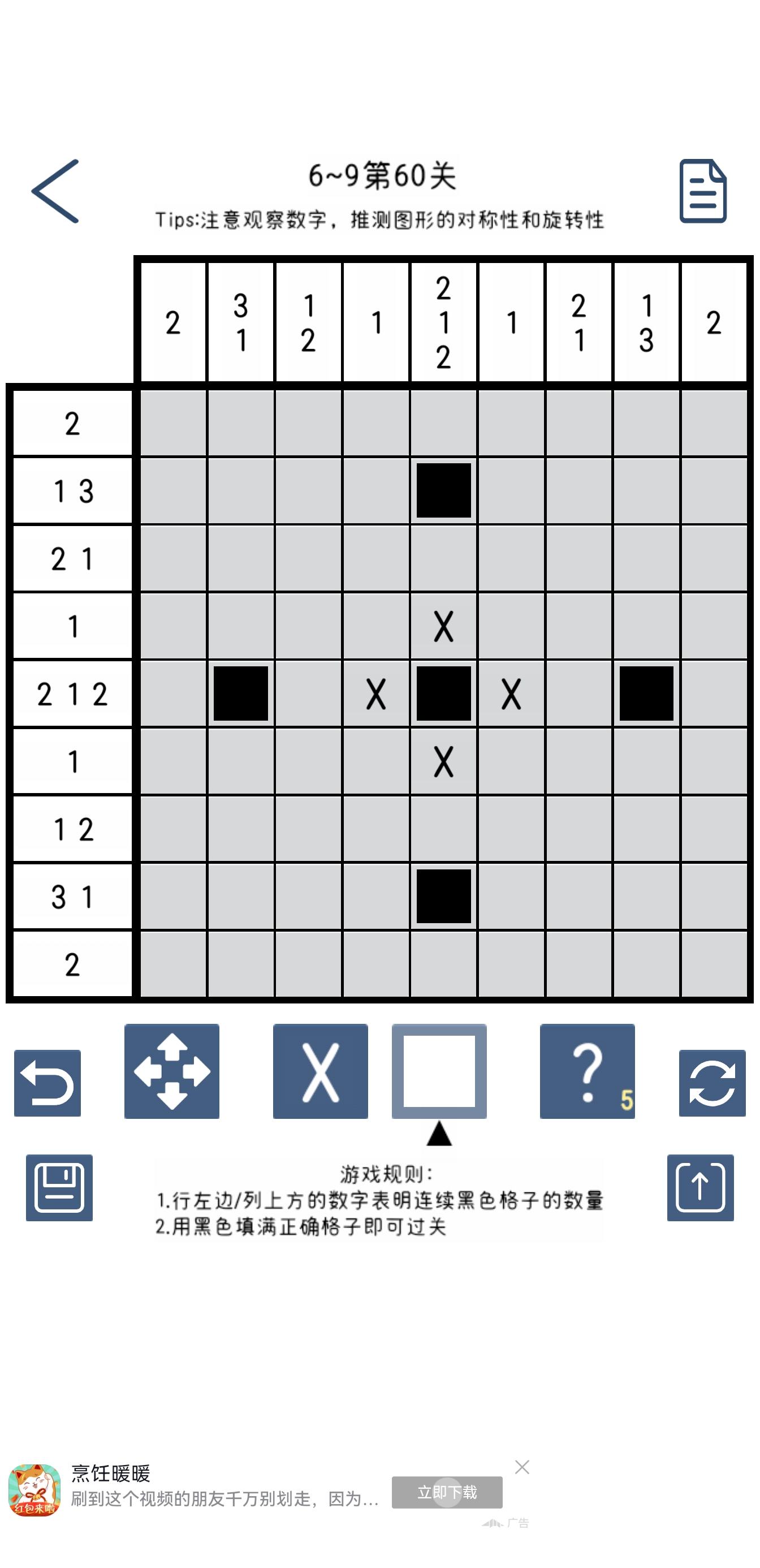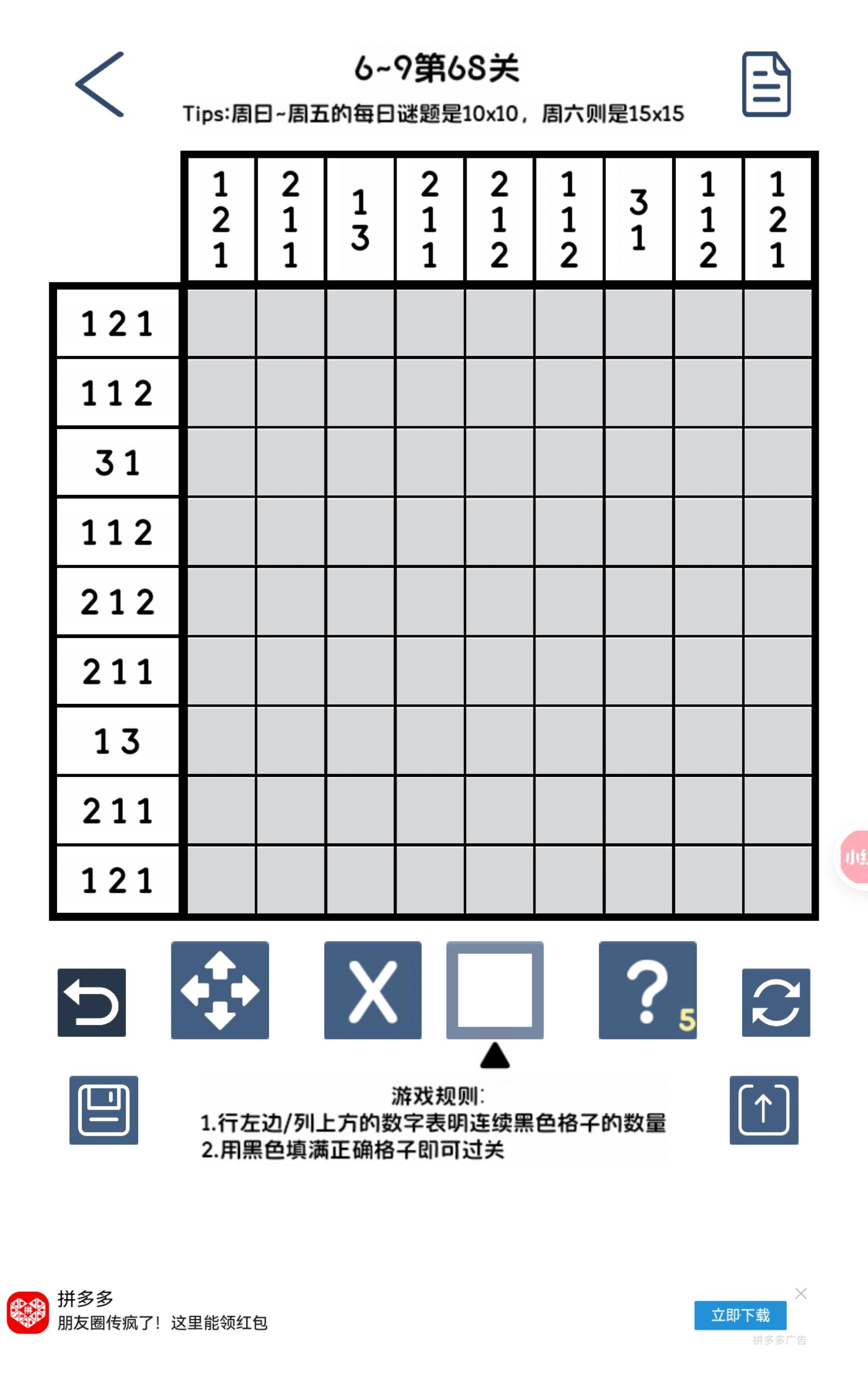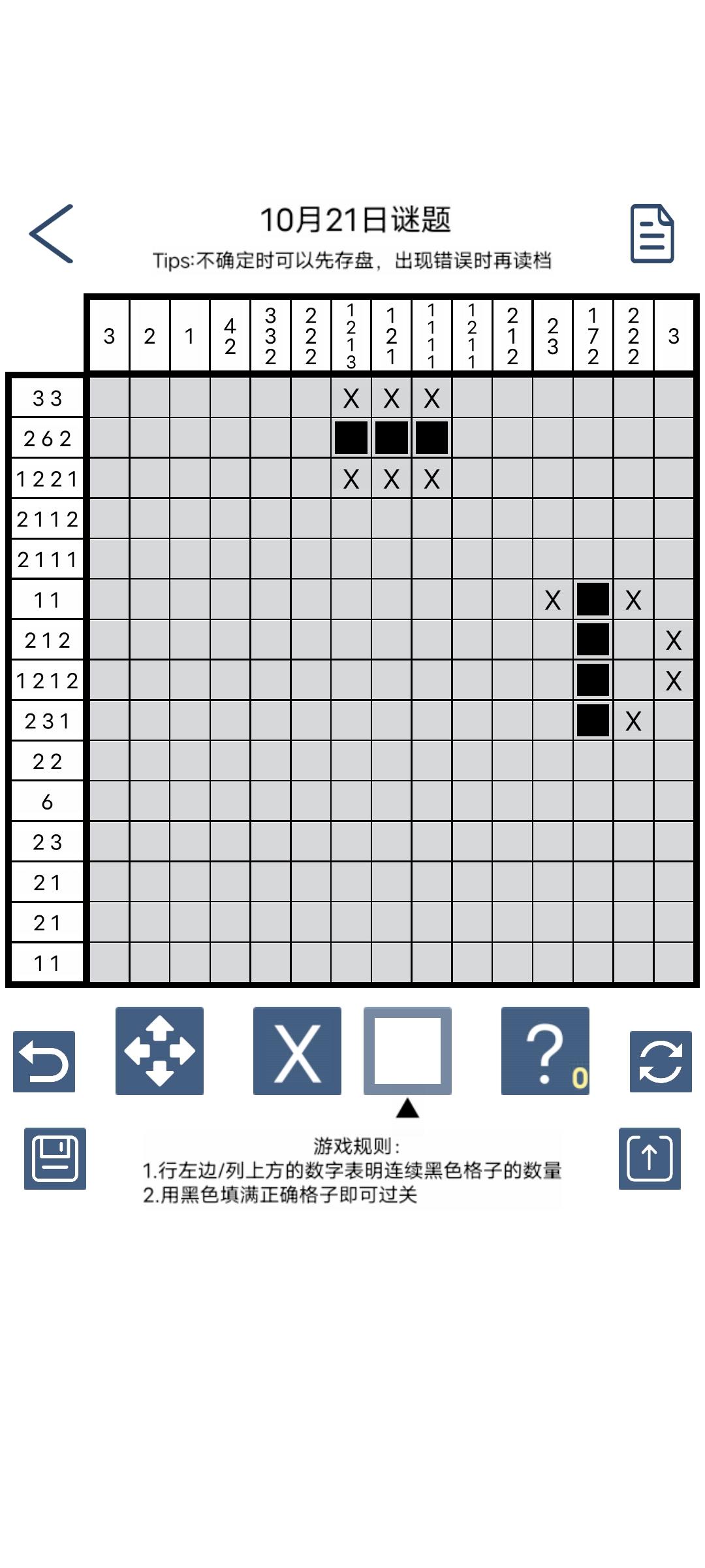 如题,以前从没接触过数织,9x9最后一关卡住了,我用试错法试出来了,但是没有思路,不知道该怎么确定第一个块。有没有大佬给一个思路,只要能确定一个块就好了。