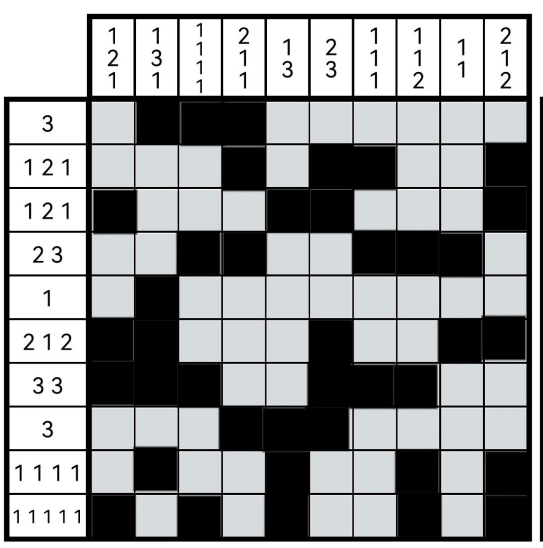 4月2号谜题有问题,下排335,横排倒数345格是必占,上面一个113,一个13,竖排2个倒数3格必占,右边2221,最后一格必占,12后面两格都不能占,最后的45不可能做到