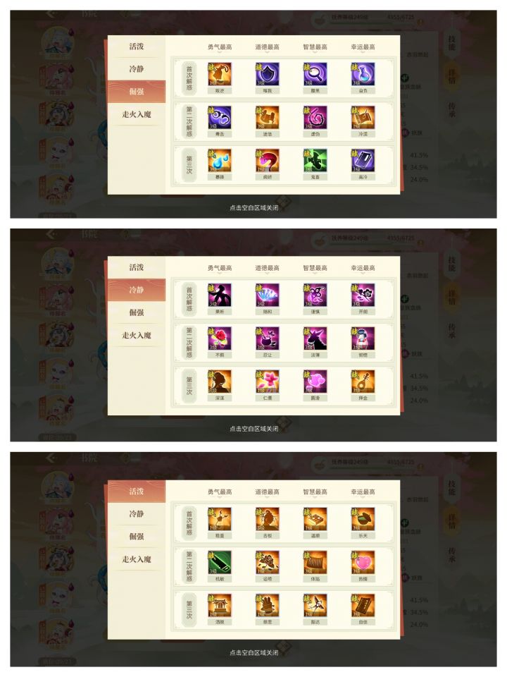 图1.每日任务(图下)&排行榜(图上):①每天完成任务活跃度达到可以获得100绑金+1云裳币等②点赞前三名可获得10绑金(每天次数五次)图2.征战:①巡防(图上)有时爆绑金,②挂机奖励(图中)银币与经验的主要来源,有的时候会一个始祖碎片③挑战可以手动,反正也不会打不过(bushi图3.培养天赋:①倔强:个人认为毒舌有用,在提血中必不可少