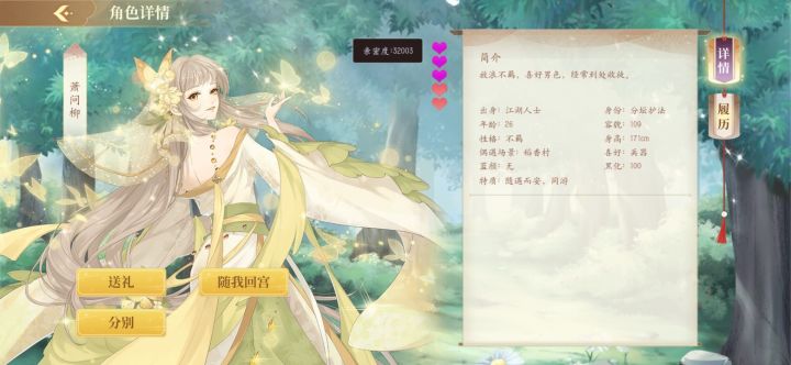 发现好多人问关于寻访的问题,所以想着直接写个攻略吧,只玩了半年的渣渣玩家,如有错漏,欢迎指点。因为寻访事件太多,所以慢慢写吧……1:随我回宫这个是真实存在的,但是只有三个人可以带回宫,禹重泽,萧问柳以及骨止寒,其他人都不可以,好感度刷再高也不行,出现随我回宫的前提条件是,亲密度刷到三万二。截图里是我的萧问柳亲密度到达三万二的时候,这时才出现随我回宫的选项,点了后选择“我希望你陪在我身边”就