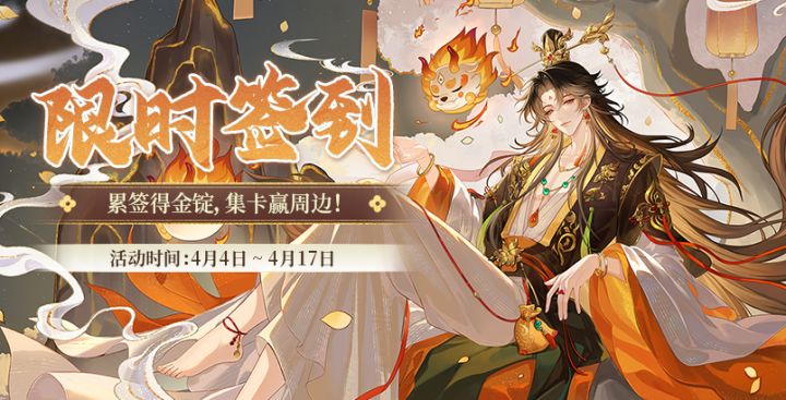主上,4月限时签到现已开启,累签7天即可获得全部道具奖励,参与集卡还有机会获得随机周边哦~▮活动时间签到开启时间:2026年4月4日10:00 ~ 2026年4月17日23:59礼包码有效期:领取后 ~ 2026年4月18日23:59▮其他说明1.礼包码一人一码,活动期间每个账号仅可使用一次同类型礼包码;2.本次活动为累计签到,断签后可续签;3.活动结束后礼包码失效,请主上及时使用;