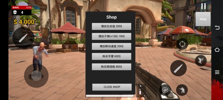 这是一个很简陋的射击游戏,内容就是用枪和手雷燃烧瓶杀死10波丧尸,杀死丧尸得到钱可以补给弹药,即游戏胜利