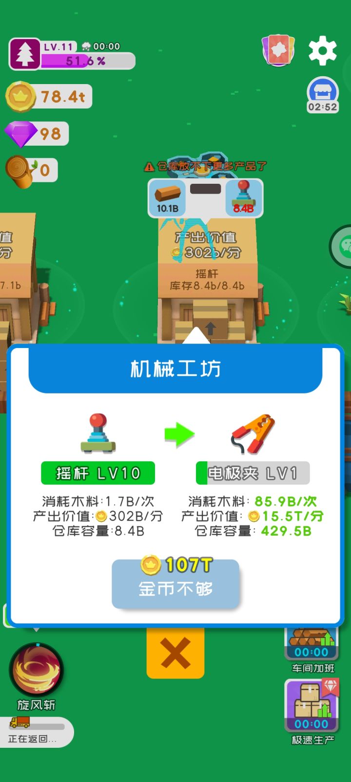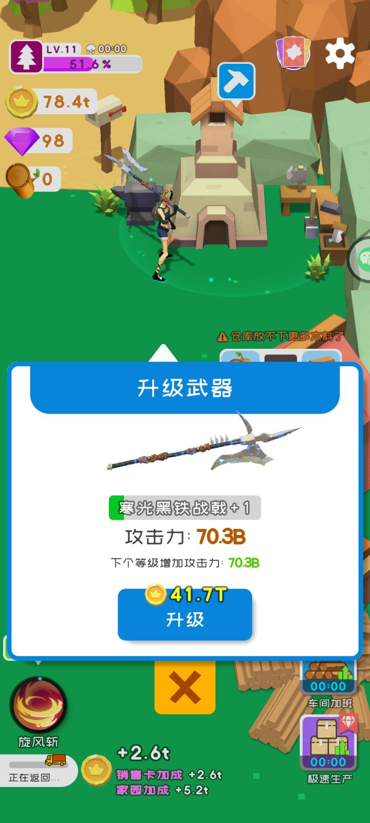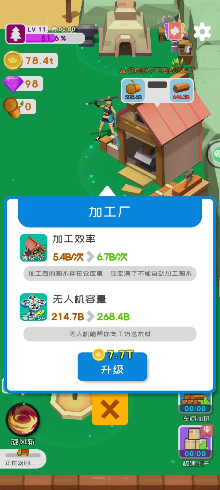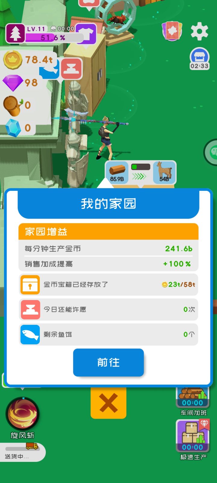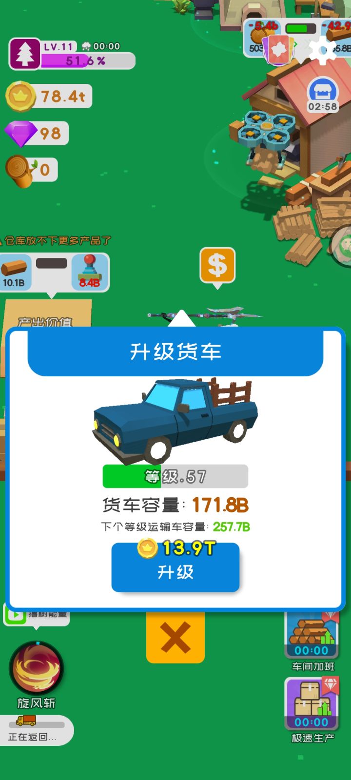 4月20日更新说真的,一个游戏,没游戏指引,就不能称之为一个游戏。进了游戏只知道砍树,完事扔进加工就没事做了。而且你们也可以看到,我的界面上,什么等级,什么金币,什么钻石的数值通通没有。我接受你们的意见,开局砍完树,丢加工里就不知道干啥了,然后看广告刷了那个快速刷新树的,砍不动了。一个金币都没有。我只能下线然后在上线,领取所谓的60块的“离线金币”,然后买了工厂,说是xx金币/分,结果砍