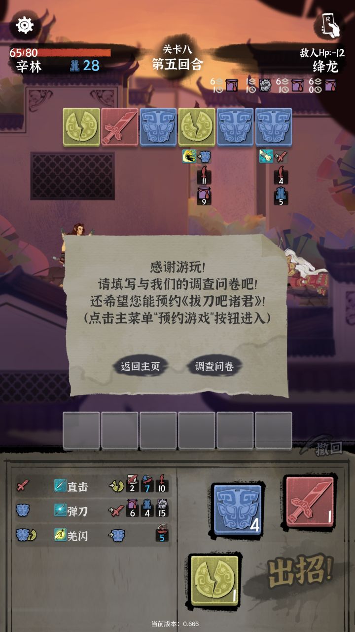 这个攻略仅适用于本次测试最开始的版本,当时的格挡是神技,但是因为格挡太过逆天,当天晚上游戏开发者就把格挡削弱了并下调刷新出格挡的概率,而我的攻略是以最初版本的格挡为核心的,所以此攻略已经没有任何价值。(我如果有时间会再写一个痴的攻略)以下为原攻略技能选择:基础招式(就是刀自带的技能)+格挡1.开局过第一关后选技能选择格挡(你要没刷到我也没办法)2.之后每一步选择都要选剑庄和酒馆(血量多时优