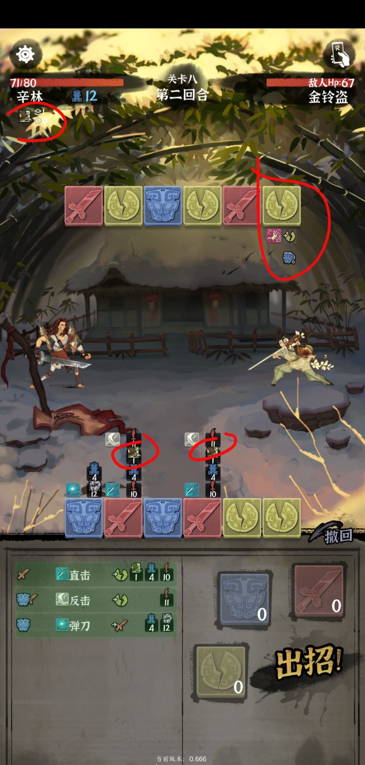 麟角凤毛虎震:攻→攻,6伤害虎臂:守→攻,5伤害伏虎:攻守→守,+6盾冯河斩:破破→破,14伤害断桥:守攻→破,8伤害,+3盾斩铁剑:攻攻攻→攻,15伤害沥血刀:守破破→守,5伤害持续3回合烈炎破:攻守破→守,14真伤,下回合随机招式+1虎啸:守攻守→攻,10伤害,下回合攻招+1残阳断虹斩:破破守攻→破,32真实伤害万刀枯直击:攻→破,7伤害弹刀:守→攻,僵直3层造成9伤