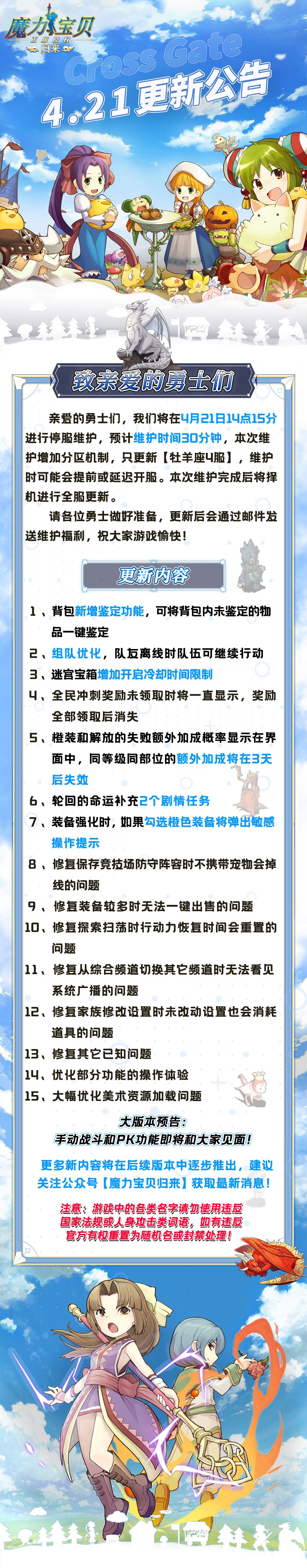 【魔力公告】《魔力宝贝归来》4月7日维护公告