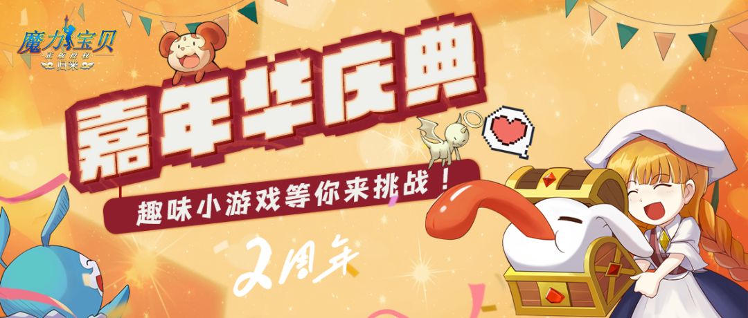 各位勇士大家好呀,许久未见,大家猜猜我们都在准备什么呀 跑路?怎么可能跑路啊喂!! Σ(っ °Д °;)っ 好啦,其实是因为春节以及咱们魔力宝贝归来的2周年即将到来 我们正在给大家准备好一大波好玩的活动以及福利呐 今年的2周年嘉年华增添加了一些好玩的东东 紧跟着小后厨一起来看看新增加的趣味小游戏玩法吧! 在活动开启后,勇士可以消耗对应小游戏的「游戏券」进行游玩,在每日的节日庆典活动中,玩家可以免费