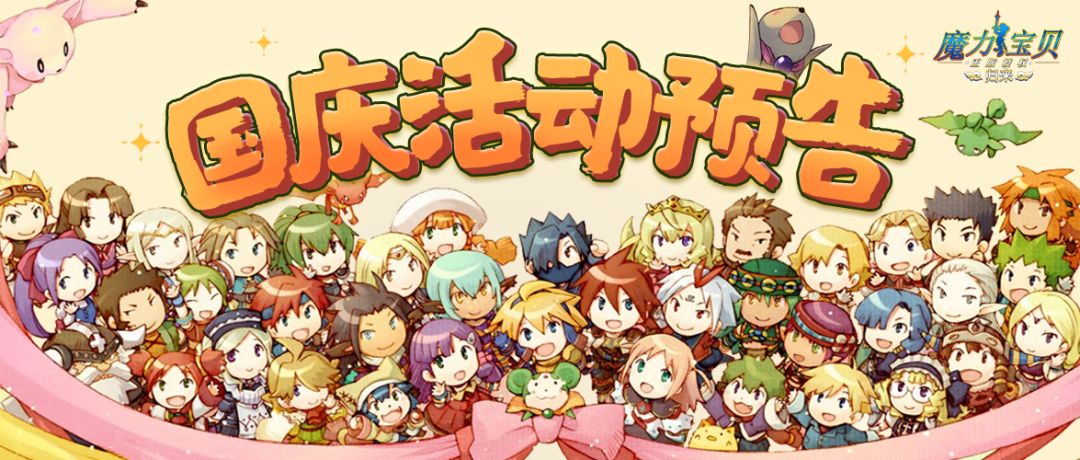 勇士们大家好呀~ 马上就要迎来国庆假期啦 各位有没有想好要如何度过7日的假日时光呢? 如果你还没有想要要做些什么 不妨一起前来魔力世界欢喜迎国庆吧! ·新服预告· 亲爱的勇士们: 为了庆贺国庆节的到来,《魔力宝贝复古版》也即将开放新的天地,10月1日,在这个举国欢庆的日子,【复古2区】也即将开启! 欢迎新伙伴以及各位回归勇士前来与我们一同度过一个充满欢笑的假期~ 开服时间:10月1日10:00 复