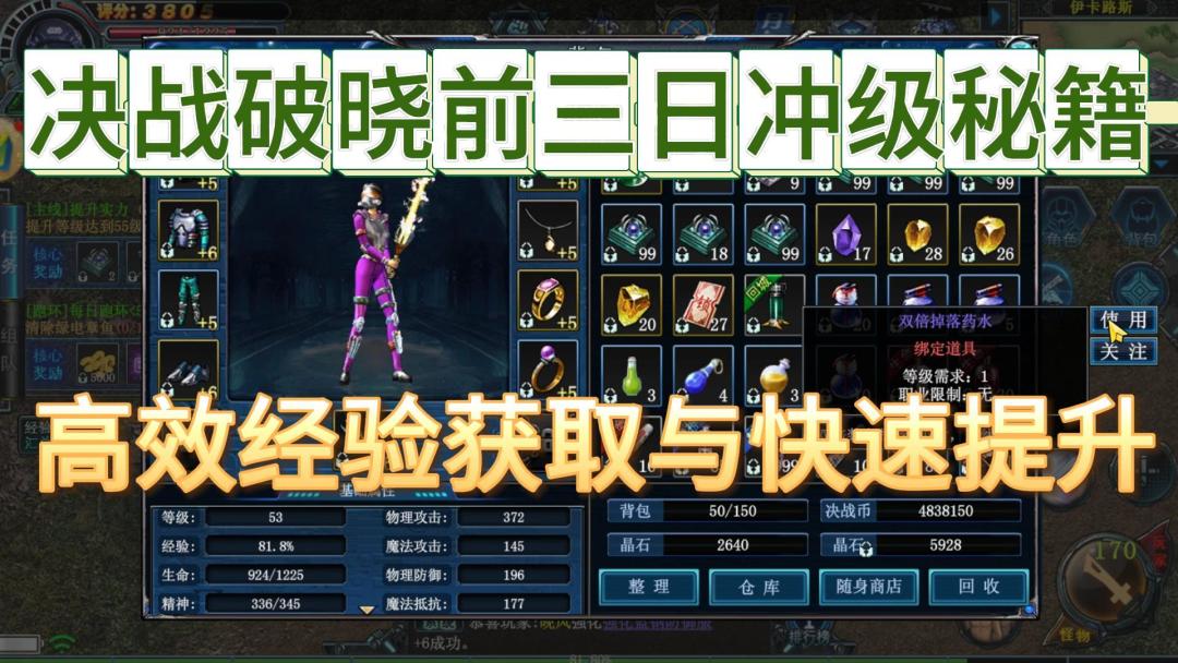 本人是在狮子6开区二天入的区。下图是我号 经历了新人冤枉花钱。 对于这个游戏 大概可以给你们1-80总结一点经验 我也是第一次发帖。 整体来说 1-80 可以不花钱安稳度过 前期基本可以0投资 也可以很安稳的去刷图。毕竟这个游戏其实大部分时间都是在挂机(最近在开发天梯PK系统,希望游戏有所改善)如果你想享受一回合清怪 60级做把橙武解放就行 (不建议在60前做装备,提升非常有限。)60的橙武足够刷