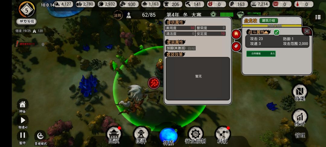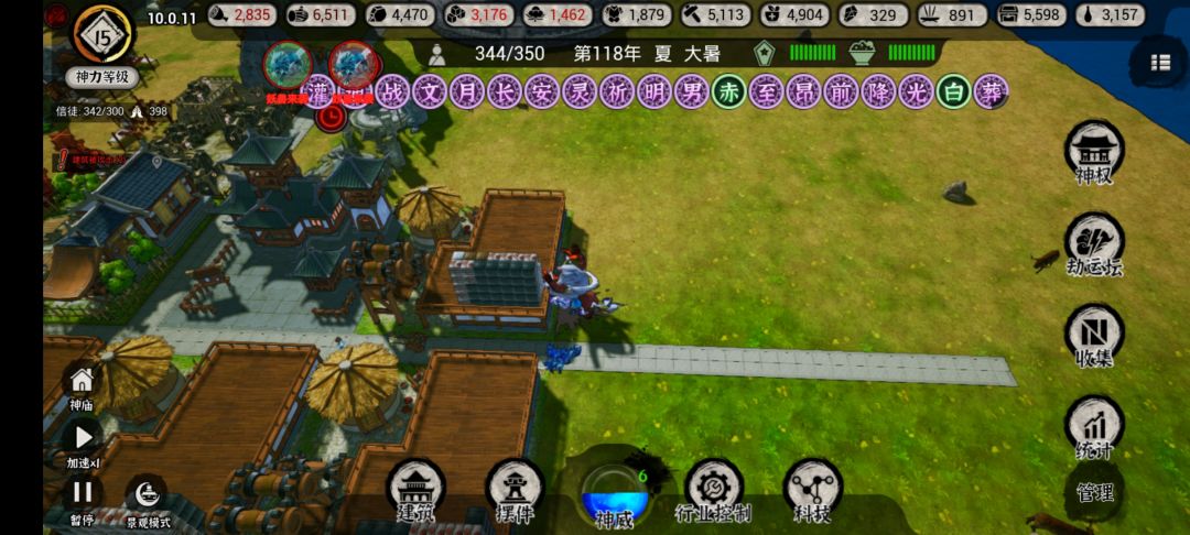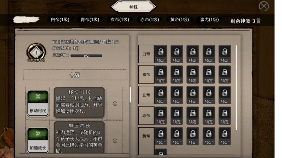 超省粮食:食肆和餐厅不用人,工作人员减到0,饿的村民会过来自己拿,不需要人。配置那里把素菜和肉的勾选去掉,只勾选让货郎送菜肴就行了,因为食肆和餐厅的人是随机取货的,有菜肴不拿,竟然拿素菜和肉,省下的人口建市场,货郎负重多速度快,所有建筑效率都能提高。5级前省粮食只能多建几个伙房,素菜鱼肉控制好比例,尽量更多的加工成菜肴,而不是低效率的直接吃菜。 刷成就:有个最麻烦的隐藏成用五行神雷劈死500个村民