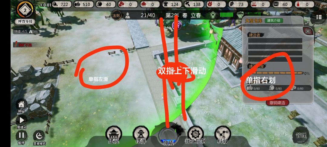 ①按住双指屏幕中心,上下滑动调整视角 ②单指在屏幕左右两边找没有建筑的空挡滑动可以防止误触, ③建筑,修路没有反应就点x取消,然后重新点需要的建筑点图标建造即可 《《千万千万千万不要充电玩》》,巨卡的,屏幕发烫的话操作更加困难,还有别调高画质帧数,看官方后面能不能优化了,不然不建议玩 玩的话建议先过新手教程,不然真的一点都玩不懂,然后建议第一个存档就当练手了,练两天会了再重新开档, 目前没有