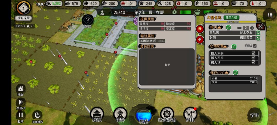 玩了四五次,死了一堆人之后,终于这次在第7年目前还没有大面积死人了...... 先记录一些自己的心得,感觉正式版后也会很不一样。 期待修复诸多BUG的正式版! Tips:善用中间底下的“神威” 1. 开局先用“神威”,免费建一个“书院”和“灵石司”;再用一个“神威”(忘记名字了),直接拥有一个“信徒”,开启科技树 2. 神威满10次就不能蓄力了,所以有了就用,不用太吝啬 3. 神威升级之后,