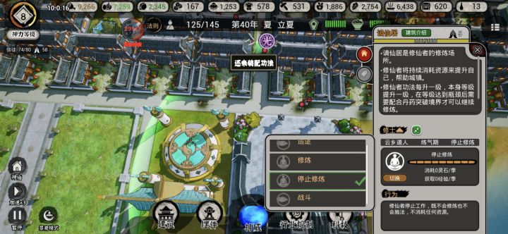 ①开局找个地方放下神庙,游戏正式开始②打开神威,把灵石开采放下来,顺便把空中花园放下来,把创造新人也放下来③造两个10*10的农田,种上小麦④在需要开空地的地方分别造两个伐木场,用神威里面的加速建筑(中)把伐木场瞬秒建好⑤建造住宅,最好规划一下,集中建一个地方⑥等一小会灵石开始开采了,点击科技把书院和仓库研究出来,分别建一个(后期都要补充,先做一个),用神威里面的加速建筑(大)秒建好⑦
