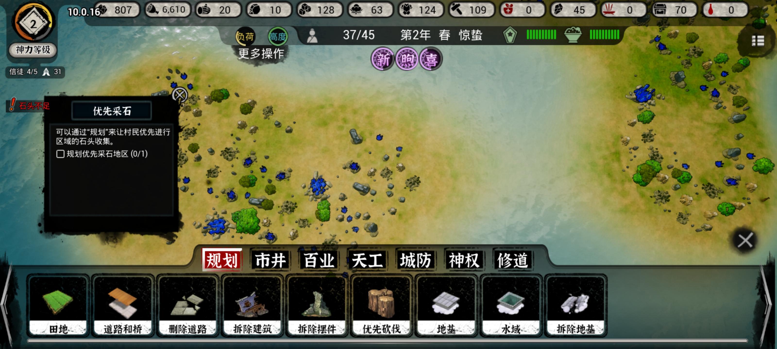 ①开局找个地方放下神庙,游戏正式开始②打开神威,把灵石开采放下来,顺便把空中花园放下来,把创造新人也放下来③造两个10*10的农田,种上小麦④在需要开空地的地方分别造两个伐木场,用神威里面的加速建筑(中)把伐木场瞬秒建好⑤建造住宅,最好规划一下,集中建一个地方⑥等一小会灵石开始开采了,点击科技把书院和仓库研究出来,分别建一个(后期都要补充,先做一个),用神威里面的加速建筑(大)秒建好⑦
