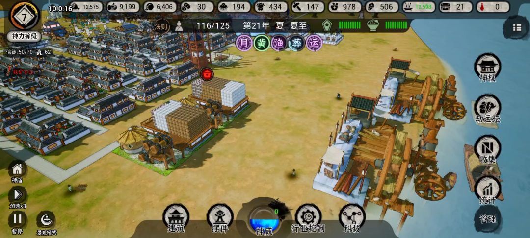 庙里边有个神的技能可以召唤矿山(好久没玩忘了哪个了),可以建无限矿场,你闪烁的那个码头也可以捞上来一点,劫难也有砸陨铁的。