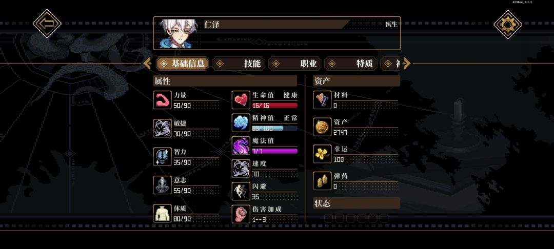 然后点属性最好不点阅读和侦查,可以把这两个减到30,射击点满,能工巧匠点一些
