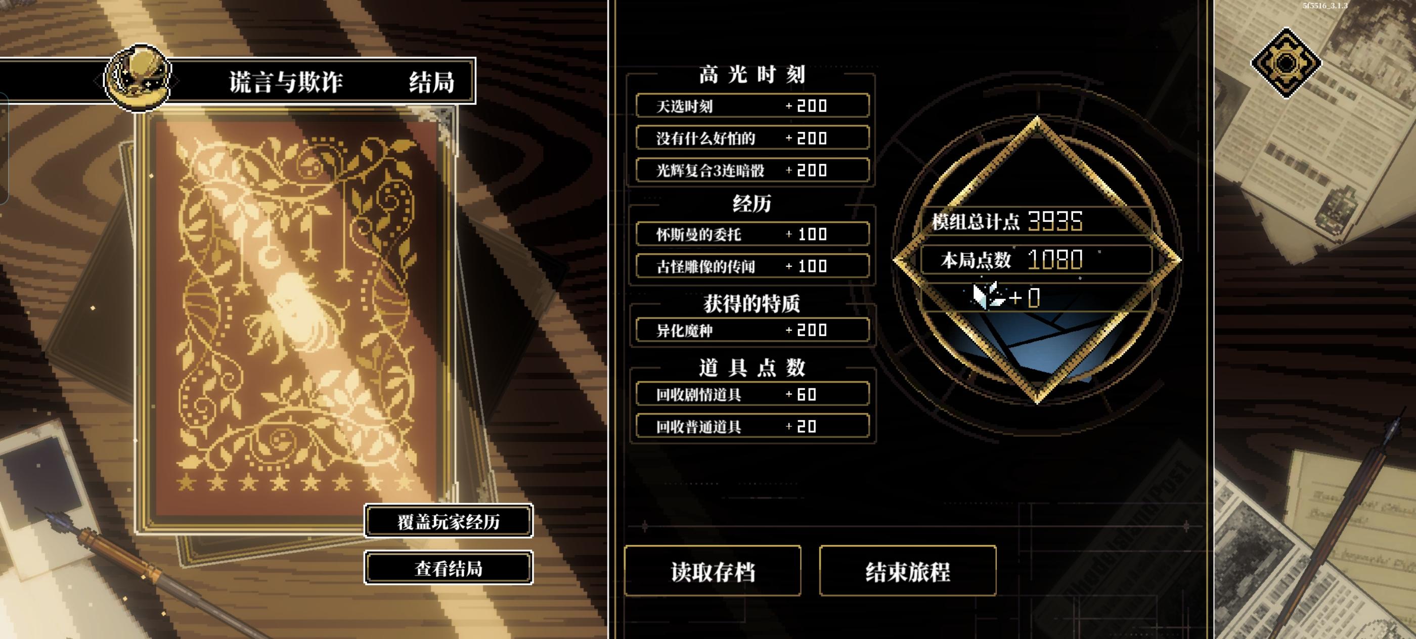请问如果没有覆盖玩家经历,选择结束旅程,那么我获得的特质还会不会在呀?