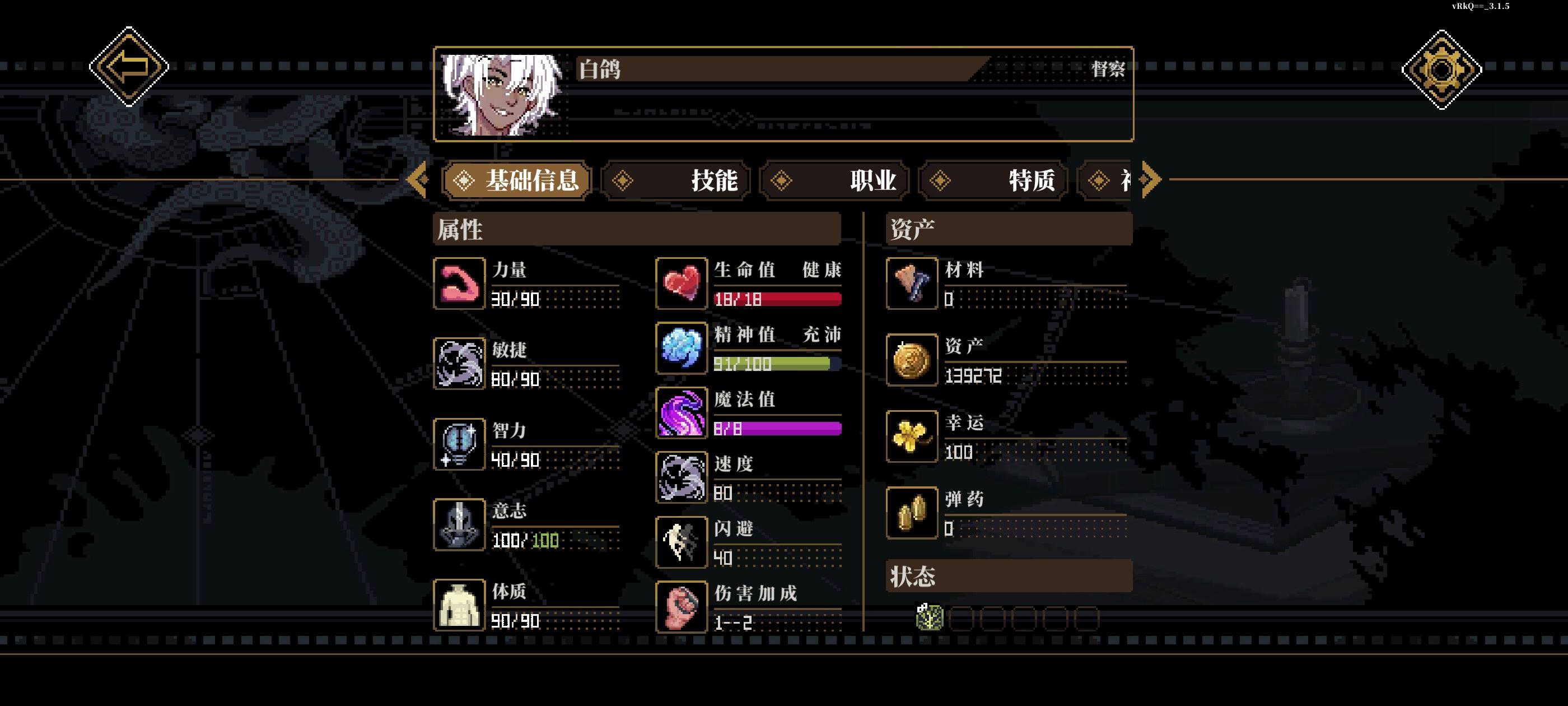 前言此攻略较适用于官方只更新六个模组的游戏版本。前半部分内容说加点过程和原理。最后有!!!总结!!!不想看的直接跳到后面(按照最后的步骤做就行了)。 加点原理 先说力量和敏捷因为当前版本(前六个模组)没有相关特质所以开局直接拉满 智力初始加70,开局选一个超自然研究亲和特质智力+20智力上限+10(智力上限和魔法值上限有关,所以我个人感觉他比开局选的那些特质都强的多)。再加上模组一接触