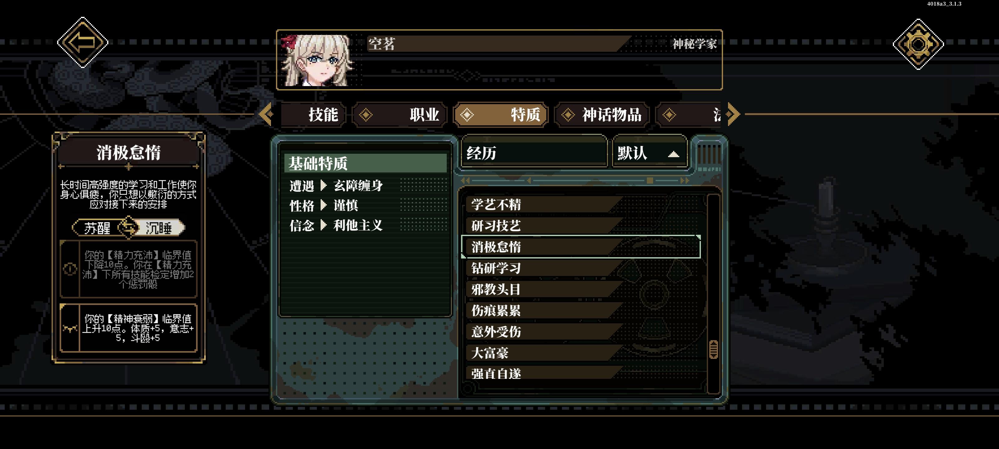 玩的时候就觉得不对劲,出来一看发现连研习都有俩惩罚骰特质里找了一圈只看到消极怠惰会有俩,但我给它沉睡了都没用,是bug吗?