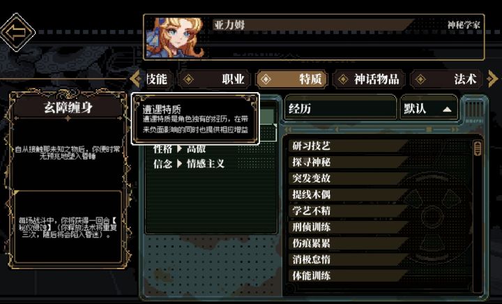 前言此攻略较适用于官方只更新六个模组的游戏版本。前半部分内容说加点过程和原理。最后有!!!总结!!!不想看的直接跳到后面(按照最后的步骤做就行了)。 加点原理 先说力量和敏捷因为当前版本(前六个模组)没有相关特质所以开局直接拉满 智力初始加70,开局选一个超自然研究亲和特质智力+20智力上限+10(智力上限和魔法值上限有关,所以我个人感觉他比开局选的那些特质都强的多)。再加上模组一接触