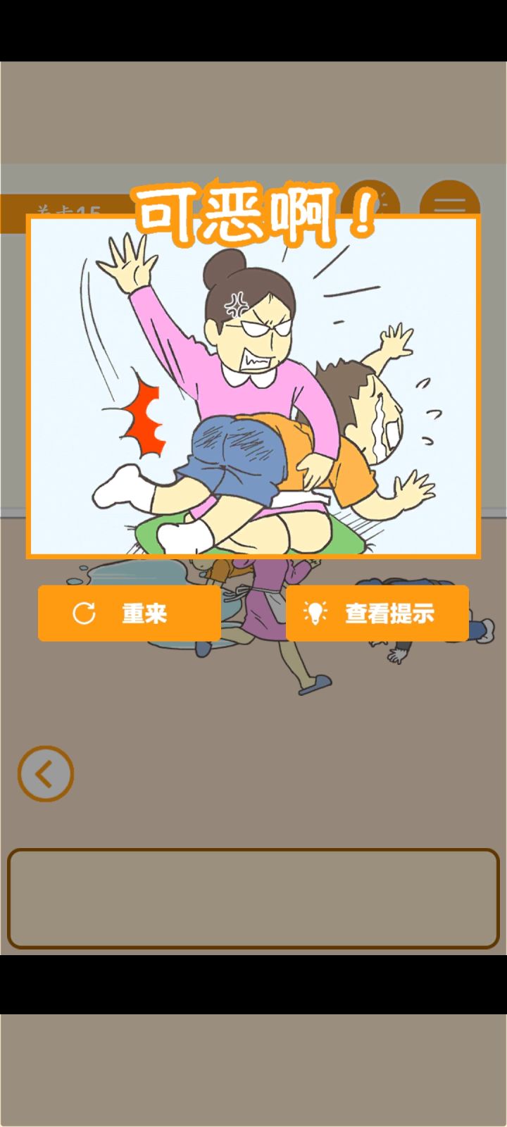 第15关我怎么都过不去,气死我了。卡bug了是吗?我也在网上搜到教程了,我的做法就是对的,但是我就是怎么都过不去。有够无语的。😅游戏挺好玩的,但是这个bug到底是怎么回事。还有就是为什么这个提示它一直出不来??有谁来给我解释一下,玩了很多遍都过不去,提示也看不了,上网搜教程别的博主都过去了,我按照他的方法过去,我就是过不了,气死我了😅😅😅
