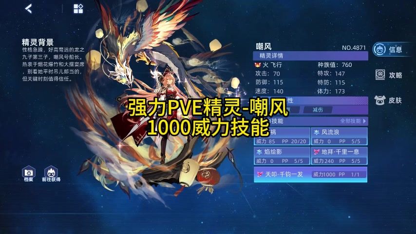 强力PVE精灵-嘲风 1000威力技能