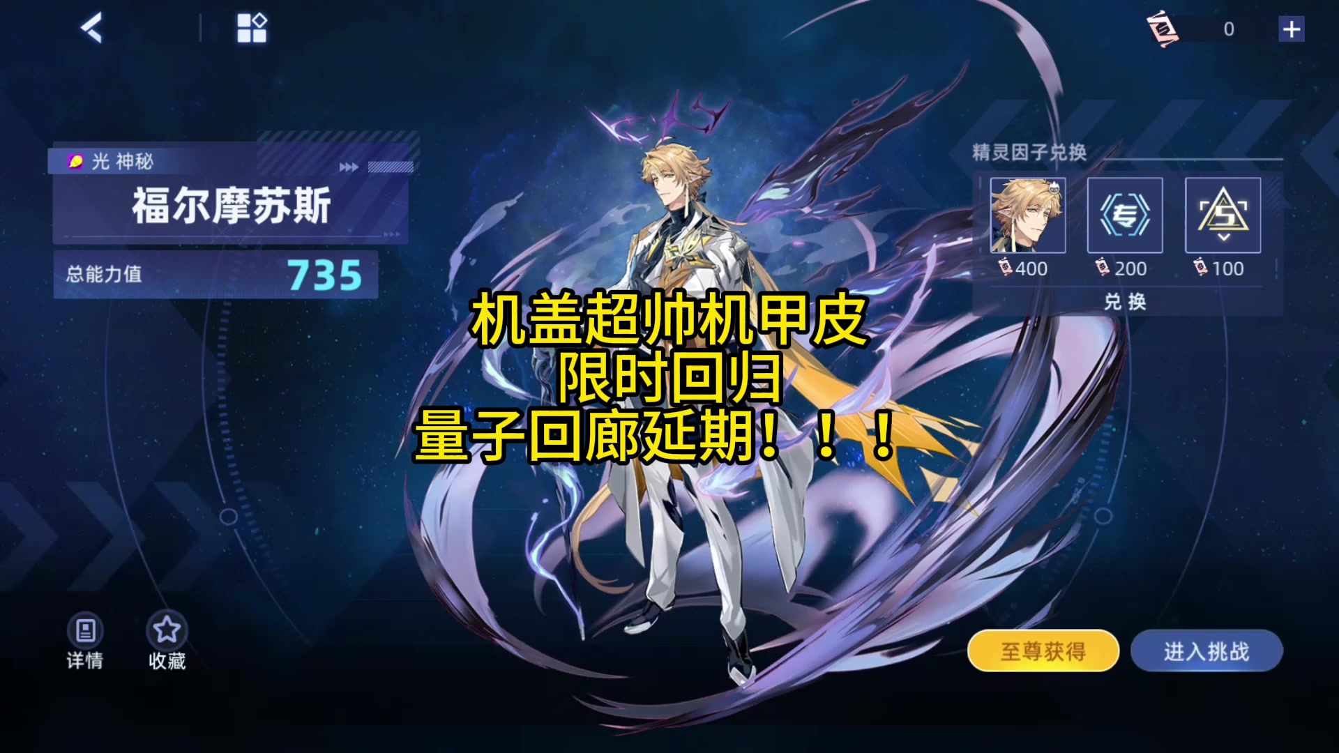 机盖超帅机甲皮肤限时回归 量子回廊延迟更新!