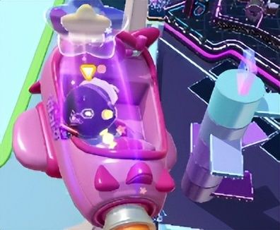 地图构成:整个赛道由四个部分组成。第一个部分是一个空间站里有散乱的板子,板子不是重点,开头的井字型金属架需要我们注意,还没开舱门的时候我们跑到地图随便哪根黄线就行,可以直接进去不会被卡顿。 第二部分是风扇和蓝色带电网,这里我们走位避开就行。 第三部分就是蓝色方块、床垫、固定在墙上伸缩移动的障碍物,也是走位就行。 第四部分是开阔的外太空,有散乱的紫色小球,如果我们之前捡到比如传送球、弹簧绳子,可以派
