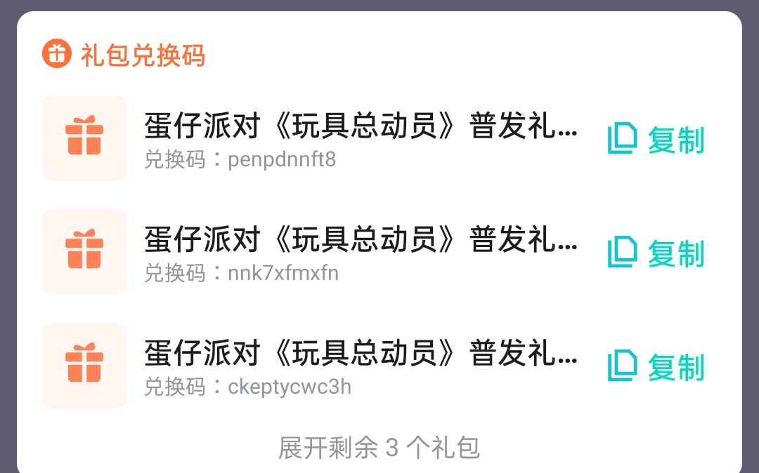 假日未到,福利先至~ 惊喜兑换码为蛋奉上 萌趣套装免费三选一! 好礼兑换现已开启 快邀请蛋搭子一起来领取吧~ 🥳兑换码:EGGY24BSEGGY 🥳兑换方式:登录游戏并点击【活动】-【日常】-【礼包兑换】兑换成功后即可前往邮箱领取