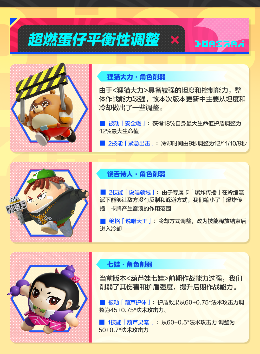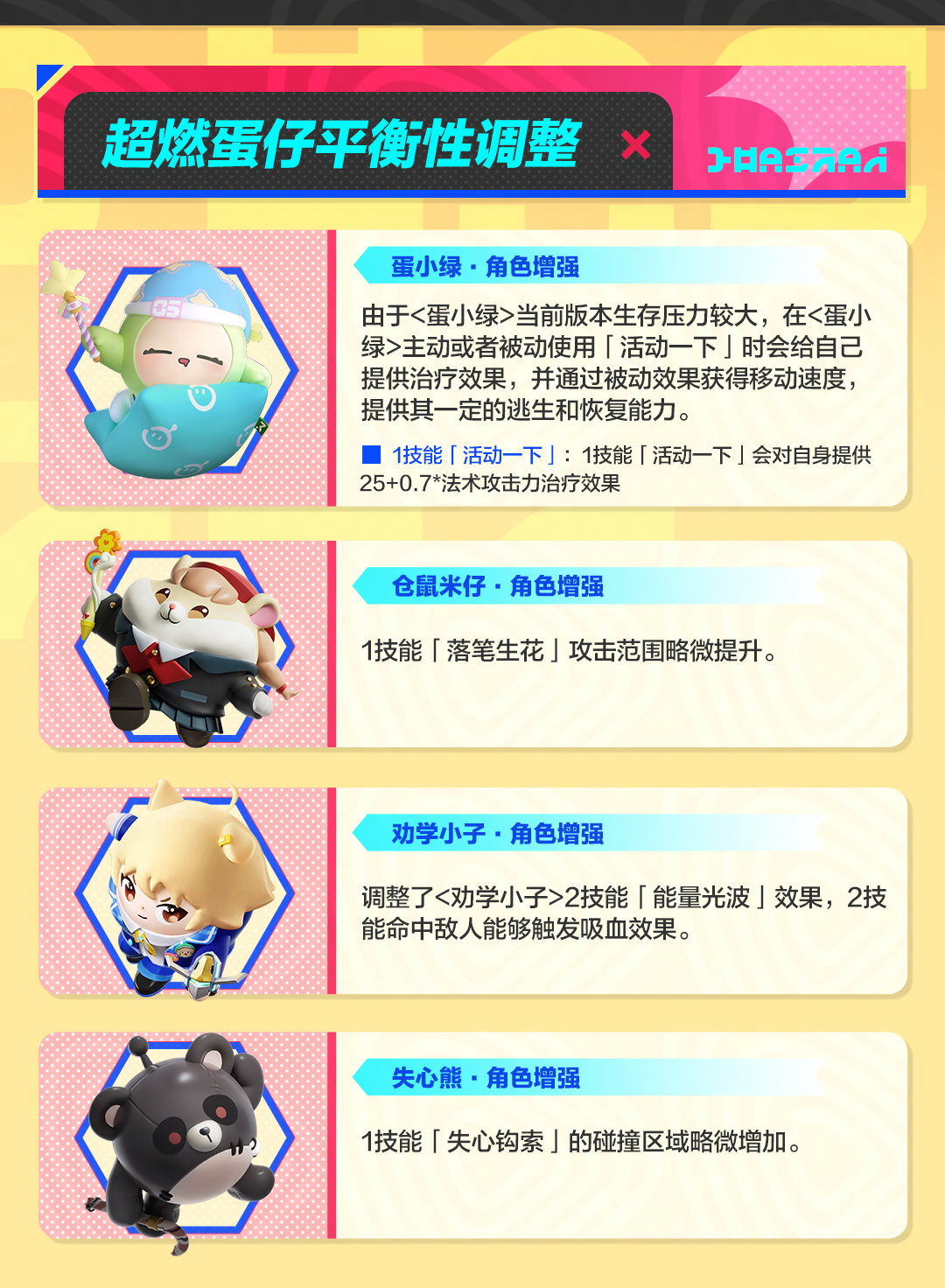 1月15日(周四)更新完毕后,超燃系列玩法将进行系列调整与优化,蛋仔们快来接收最新资讯~