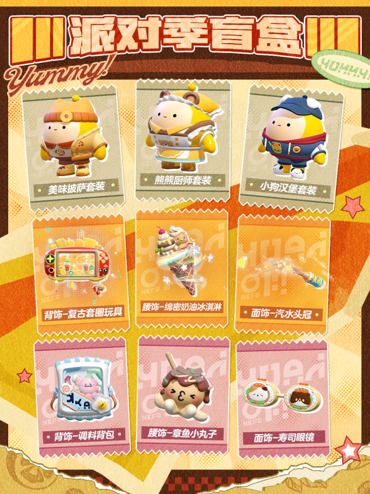 4月17日(周五)S30元气零食季来袭,<爆米花伯克>、<盖浇饭>和<饮料罐>诸多萌趣外观登场,<麻辣土豆片>和<芝士玉米棒>等配饰和动作上线!派对季盲盒、手册奖励和蛋位任务等全面焕新,是时候无所顾忌地开启暴风狂炫模式——