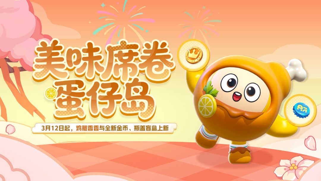 锁定蛋仔频道EETV,收看全新节目舌尖上的美味![表情_开心] 3月12日(本周四)-3月25日,全新外观<鸡腿香香>美味来袭,外观含「特殊互动」为你加个鸡腿~使用许愿币,参与【灯箱拍拍乐】点亮灯箱获取奖励!还有趣味表情<十分期待>等蛋来拿。 3月13日(本周五),瓶盖盲盒和金币盲盒上新,参与抽奖可获取瓶盖盲盒<西红柿><骨头饼干套装><胡萝卜套装><活力杨桃套装>四款趣味穿搭,金币盲盒五款生