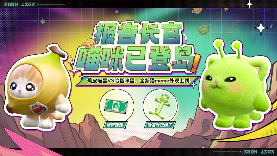 喵咪星系的两只宿敌喵咪——蕉皮喵蛋&哈基咪蛋正式登岛,命运交织,对决一触即发! 🐱 4月3日(本周五),全新外观<蕉皮喵蛋><哈基咪蛋>强势登岛!参与盲盒抽取还有机会获得<哈基咪玩偶干><携蕉跑路>两款背饰,快穿上你的本命猫meme,来一场揪咪大作战吧~ 🍌命运的齿轮已经开始转动,你的心被谁揪走了?👽 #蛋仔派对 #蛋仔揪出哈基咪 #皮蛋节