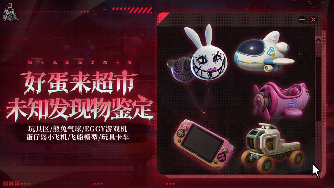 [表情_期待]3月6日(周五)惊魂寻宝队*好蛋来超市*副本「玩具屋」版本上线,全新副本区域“玩具区”正式开放,戳视频开启抢先体验—— ✦ 新怪物-熊兔气球 ✦ 气球轻飘飘,系着蛋仔往上荡。狰狞扭曲的嘴角,依稀透露谁稚嫩的笑颜? 蛋仔遇见也别慌,及时召唤搭子或自己拿起武器戳破气球方可轻松逃脱~ ✦ 新宝物 ✦ “Eggy游戏机”、“飞船模型”、“蛋仔岛小飞机”和“玩具卡车”四款全新宝物上线