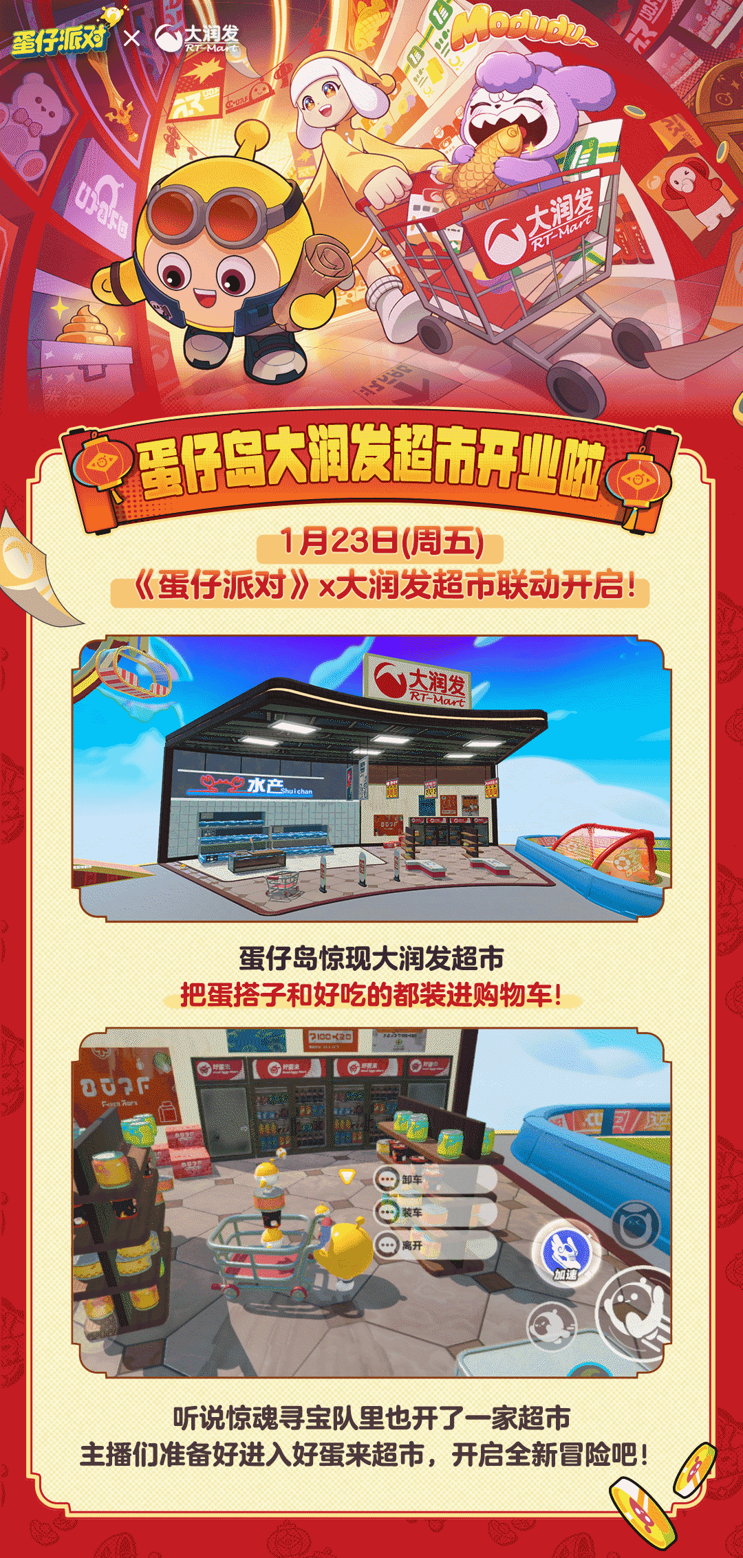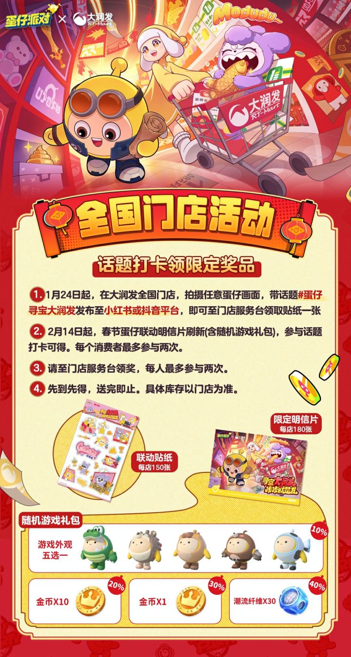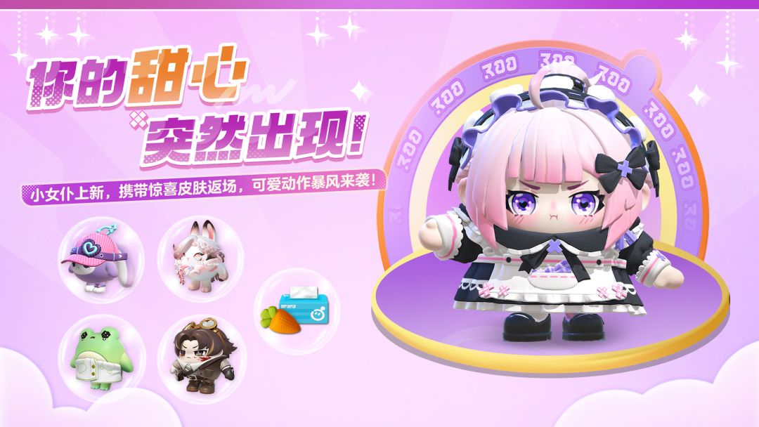 咻——魔法扫帚划破天际!1月24日(周六),全新扎气球外观<小女仆艾米莉>携背饰<咻咻魔法帚>惊喜上新。傲娇小女仆等待和你岛上相遇~ 1月23日(周五)起,直售趣味玩具<萝卜纸巾玩具>上线,前往商店即可60蛋币拿下。并且商店还将持续推出惊喜,敬请期待! 1月23日(周五),<兔露露>外观返场;同时<青年卢修斯>、<泡澡蛙呱呱>、<巨星黛丽>三款外观也将于24日(周六)惊喜返场!之前错过的蛋