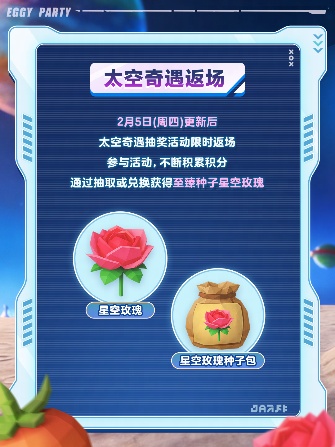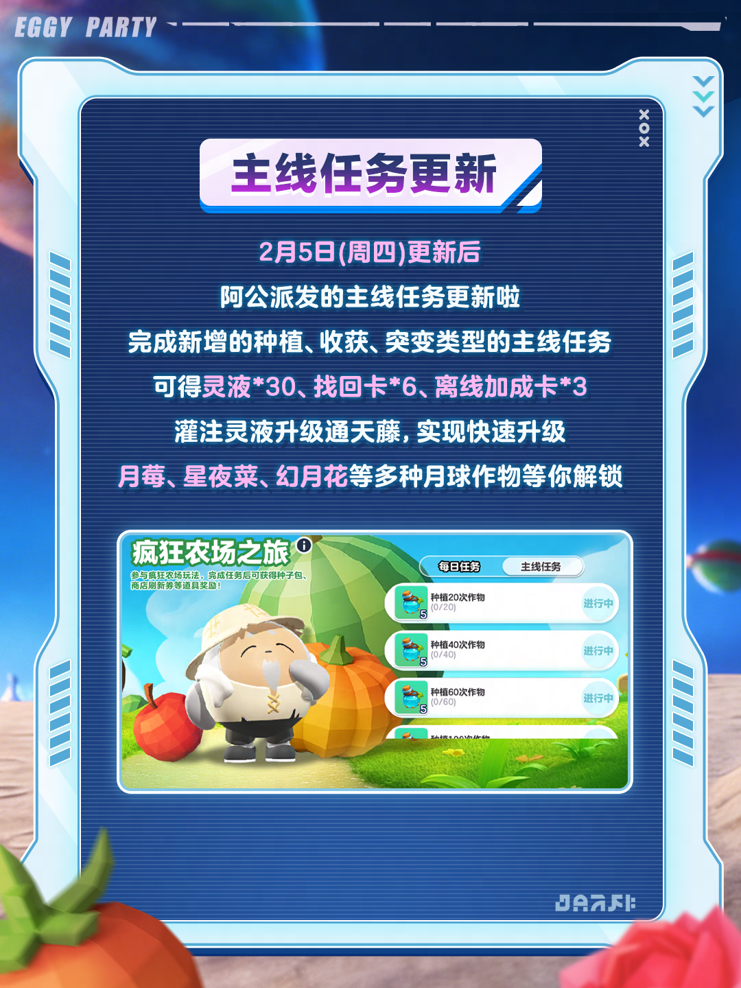 2月6日(本周五),惊魂寻宝队A级副本*好蛋来超市*开放,全新地图、全新怪物、全新宝物等你来玩!超市内部危险与惊喜并存,怪物“人鱼新娘”绝美登场,戳视频查看副本直播实况! 2月12日(下周四),画风突变的“抓马”整活即将开启!“年兽”、“花袄偷偷猫”、“小锦鲤”、“模特”等一堆不太正经的新怪物登场,更有马年限定传说级宝物“皇家马车”与大家见面~ #蛋仔惊魂寻宝队 #好蛋来超市 #蛋仔派对 #人