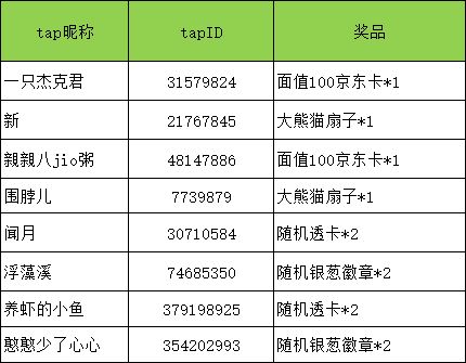各位浮莲子好,截止7月21日17:00,本次活动留言层数共计163层,感谢各位浮莲子热情参与!以下为本次活动的中奖名单↓ 活动链接:https://www.taptap.com/topic/18710931 中奖的浮莲子,请加王国小熊猫QQ:536717779,进行登记发奖。 在公布中奖名单后七个工作日内未加Q领奖,将自动视为弃奖,官方不设补发,奖品不置换,不折现。 此次活动,完结撒花~