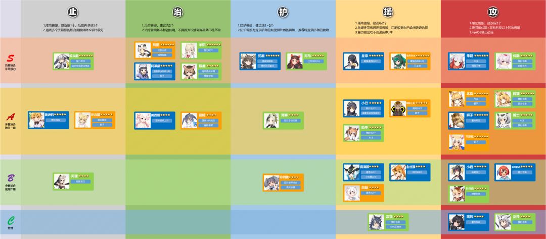 下面咱们就开始,编队顺序就是弹射顺序,重点看兽娘职业。